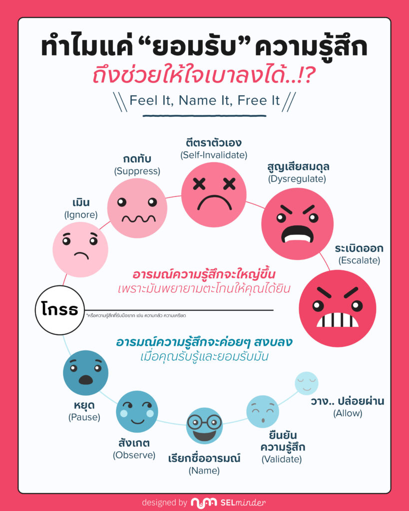 เมื่อมีอารมณ์ความรู้สึกเกิดขึ้น (โดยเฉพาะอารมณ์ความรู้สึกที่รับมือได้ยาก เช่น ความโกรธ ความกลัว ความกังวล) เราทุกคนเลือกได้ว่าจะตอบสนองอย่างไร และทิศทางที่เลือกในวินาทีนั้น จะกำหนดว่าอารมณ์นั้นจะ “ขยายใหญ่ขึ้น” หรือ “ค่อยๆ เบาเล็กลง”